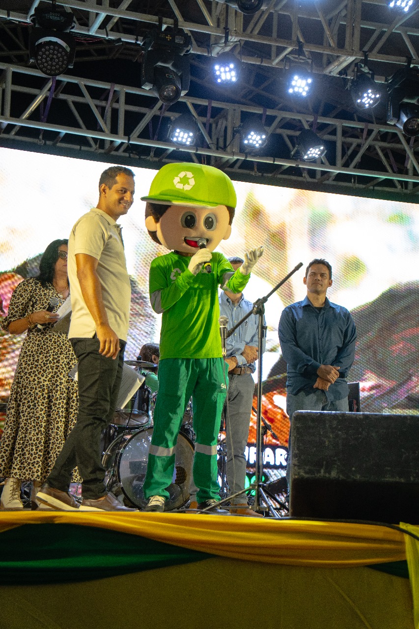 abertura do Primacanta, na noite desta terça-feira (29), no Lago Municipal, foi marcada por música, cultura, gastronomia e também por uma importante reflexão ambiental. A Secretaria Municipal de Meio Ambiente e Agricultura (SAMA) aproveitou o evento para reforçar a importância da reciclagem e da sustentabilidade com a presença especial do mascote Dinho, símbolo da coleta seletiva em Primavera do Leste.