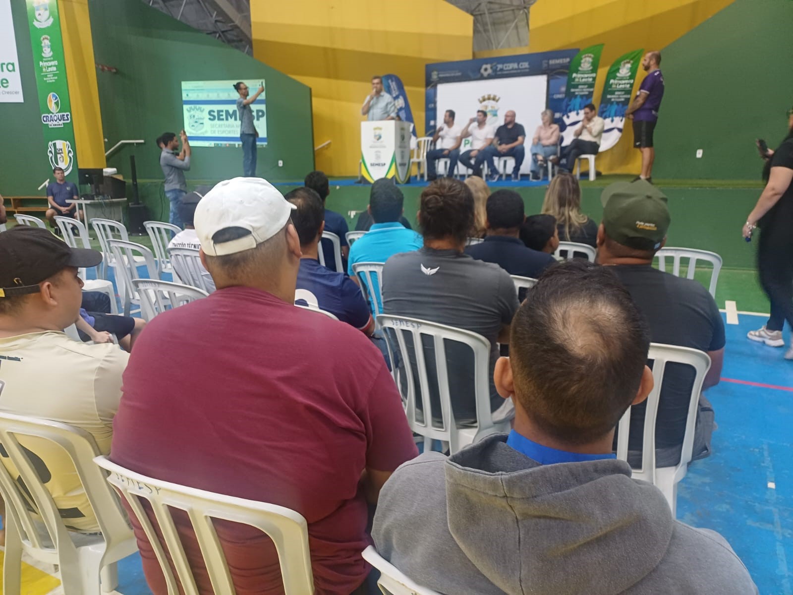 O evento contou com as presenças do prefeito Sérgio Machnic, secretário de Esportes, Márcio Lélis, chefe de Gabinete, Joélio Moraes, vereadores, além dos representantes das equipes que acompanharam o sorteio eletrônico dos grupos.