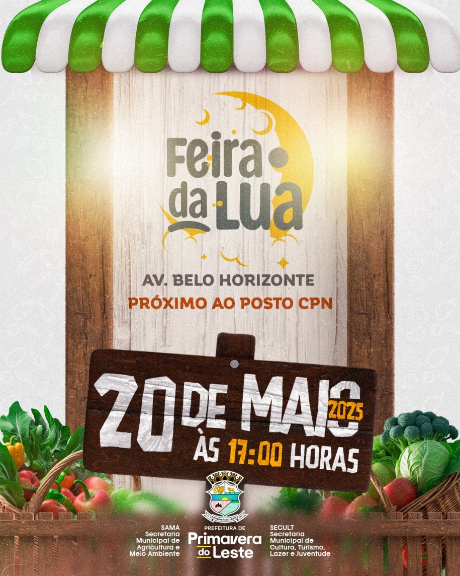 Com edições semanais e formato itinerante, a Feira da Lua leva para diferentes regiões do município uma programação que une gastronomia, agricultura familiar, artesanato e cultura local. A iniciativa é realizada pela Prefeitura de Primavera do Leste, por meio da Secretaria Municipal de Agricultura e Meio Ambiente (SAMA).