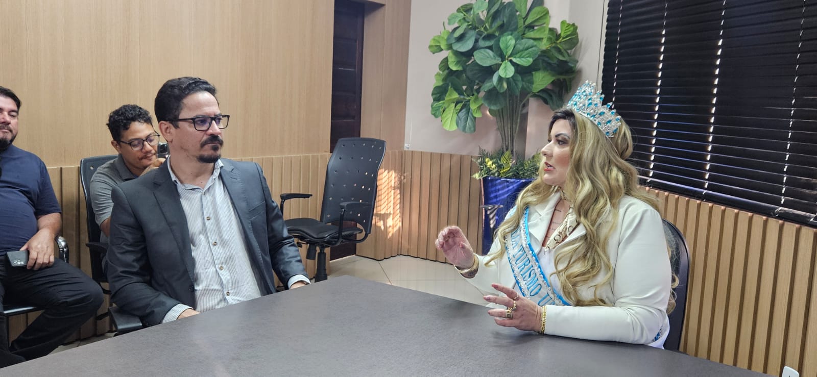 O prefeito de Primavera do Leste Sérgio Machnic recebeu no Paço Municipal na tarde dessa quarta-feira (13) a Miss Plus Size Juliana Petry, vencedora do concurso internacional Nuestra Belleza Turismo Universo 2025, realizado em Medellín, na Colômbia em julho passado, sagrando-se a Miss Beleza Turismo Universo. O gestor municipal enalteceu a conquista da Miss primaverense e agradeceu por ela levar o nome da cidade ao mais alto patamar da beleza plus size do mundo.