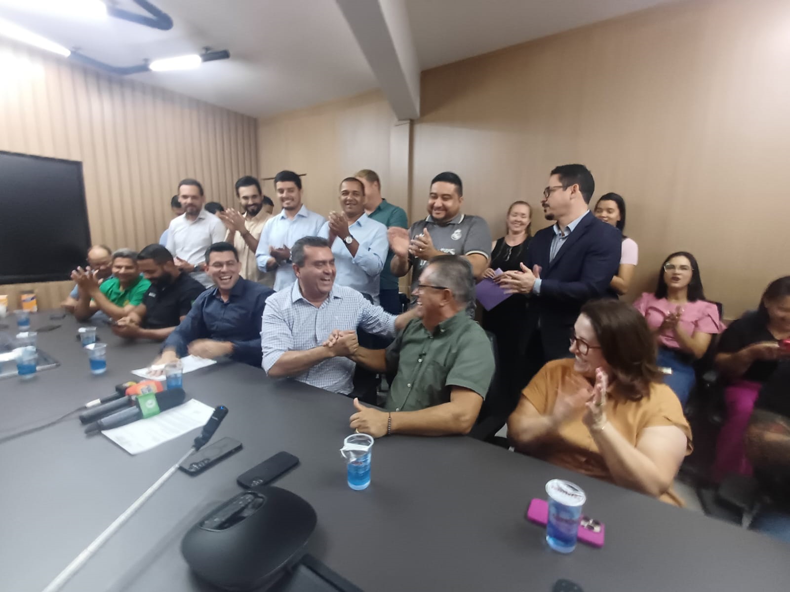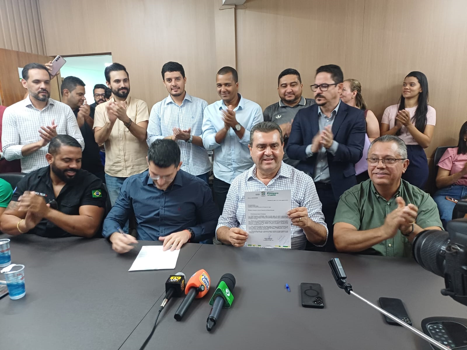 Legenda: Prefeito, vice, vereadores, secretários e servidores prestigiaram o anúncio, realizado em coletiva de imprensa