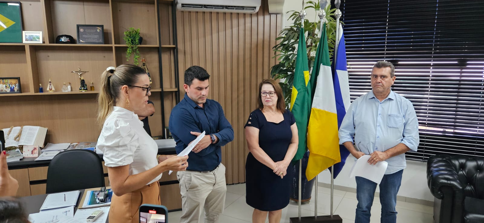 A cerimônia de posse aconteceu no gabinete do prefeito e contou com a presença de autoridades civis e militares
