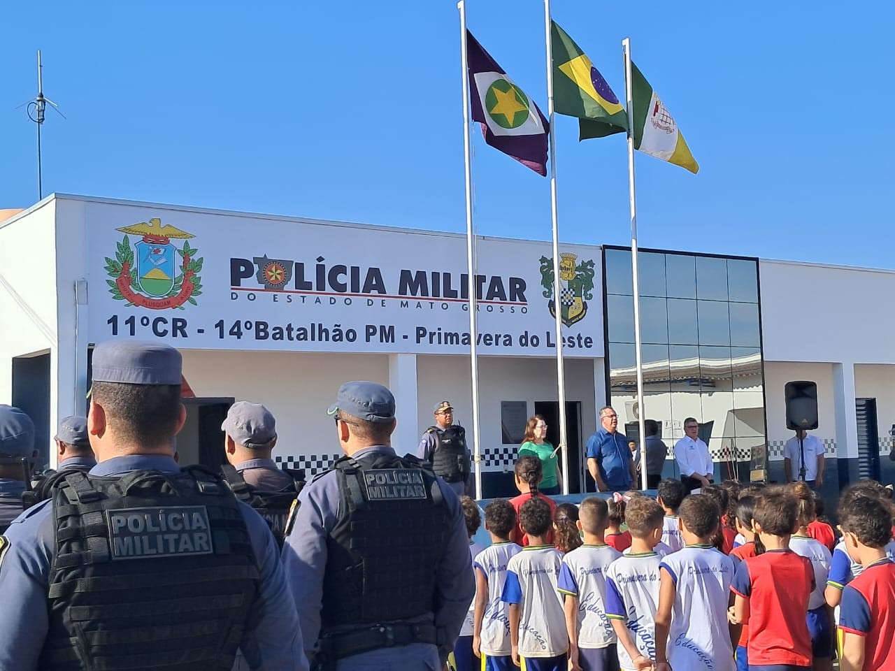Na manhã desta quinta-feira, 04, o Batalhão da Polícia Militar de Primavera do Leste sediou o 4º Ato Cívico da Semana da Pátria, promovido pela Prefeitura Municipal por meio das Secretarias de Educação e Cultura. O evento reuniu autoridades políticas, militares, professores, diretores e alunos, que foram recepcionados pelos anfitriões da solenidade: os policiais militares do Batalhão e do 11º Comando Regional da PM.