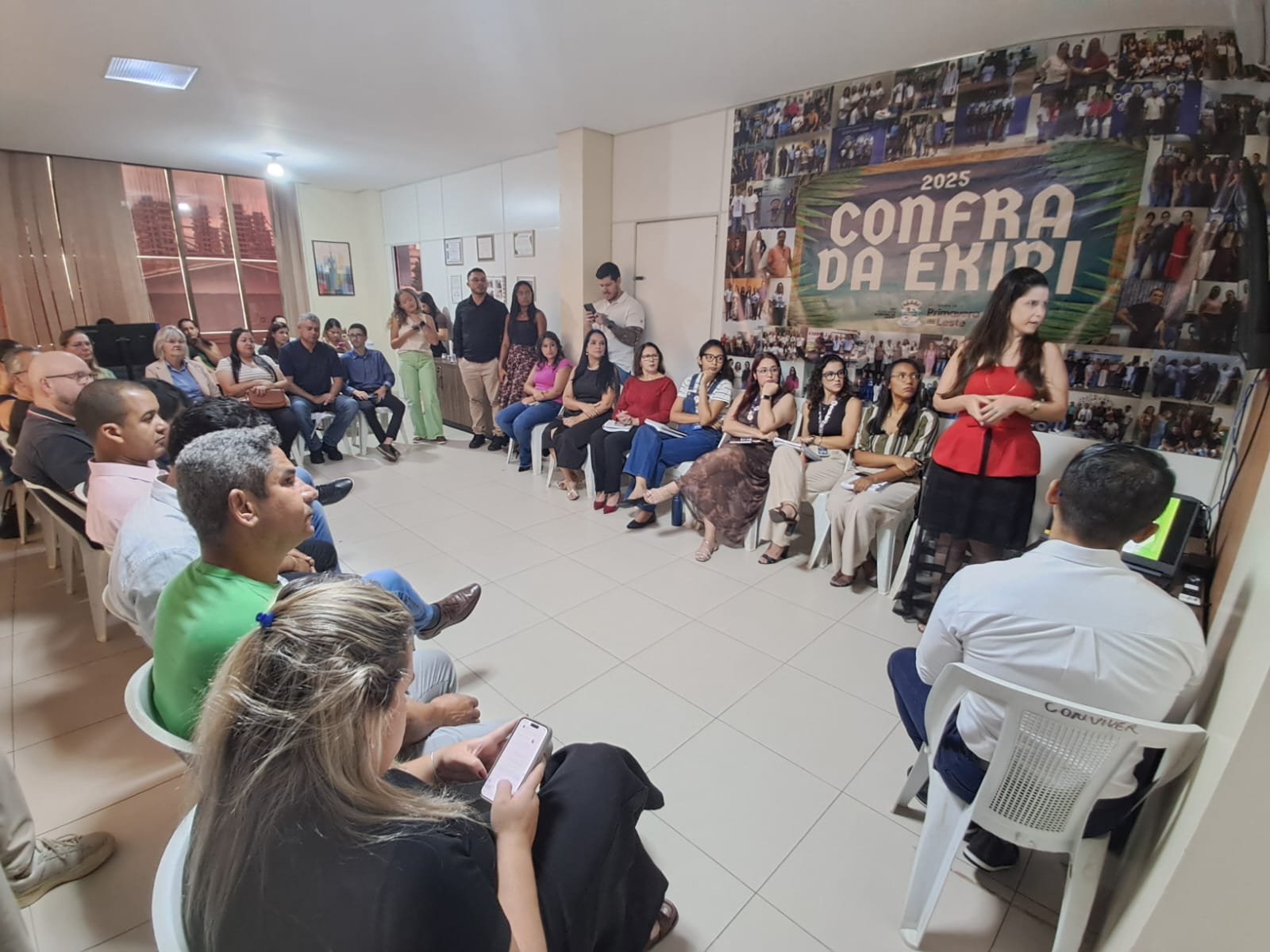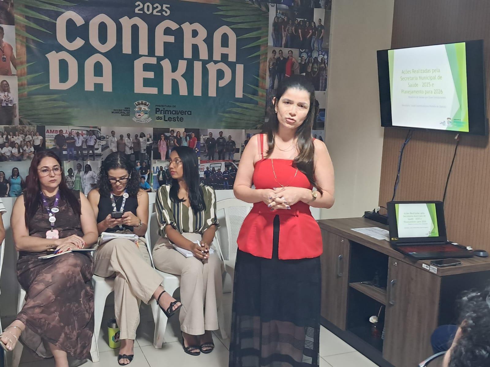 A secretária municipal de Saúde, Laura Leandra, abriu a reunião destacando o trabalho coletivo da equipe e a importância da parceria entre Executivo e Legislativo para o fortalecimento das políticas públicas na área.